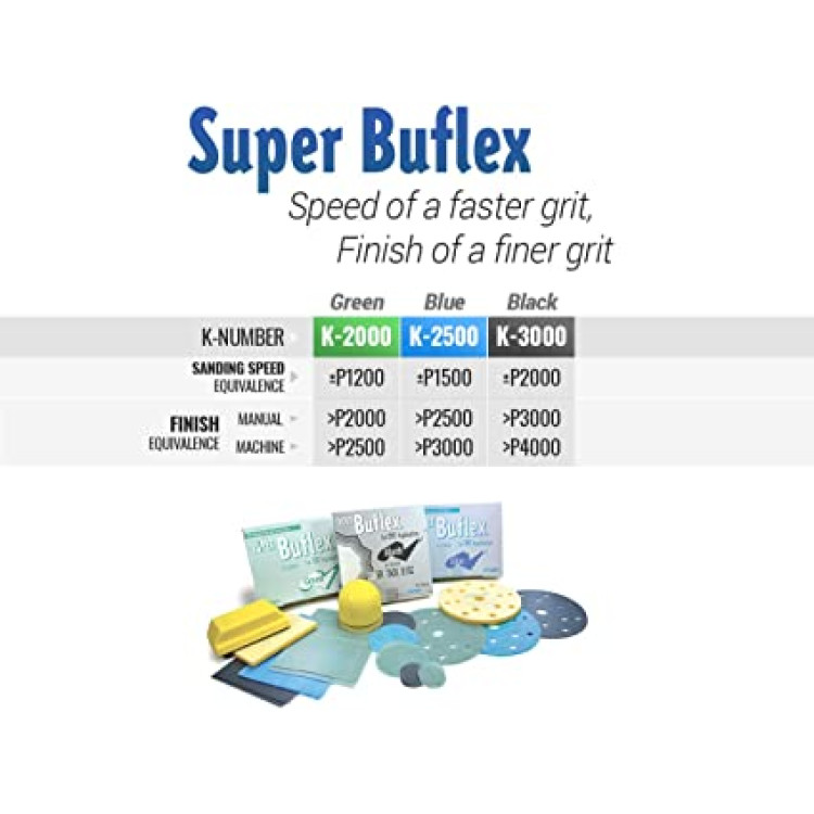 Buflex призначений для шліфування спеціальних поверхонь, таких як керамічний лак, задиристе покриття, поверхні з високим ступенем окиснення.