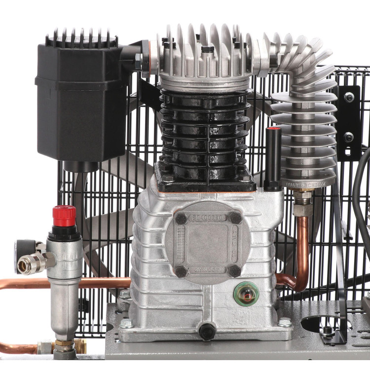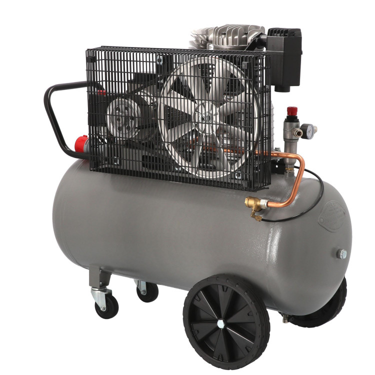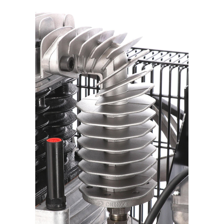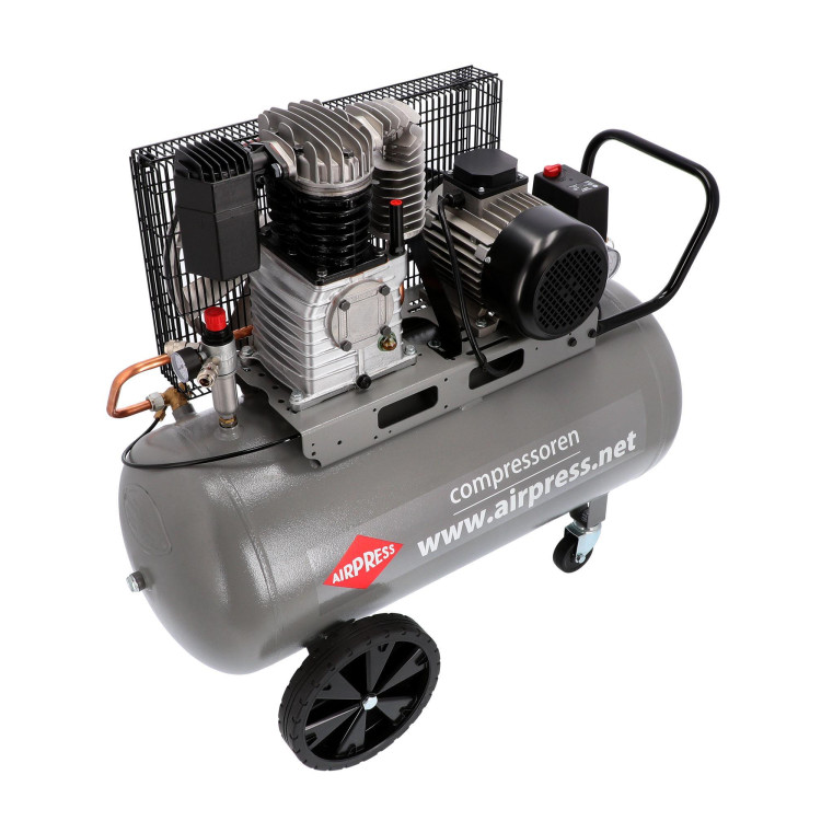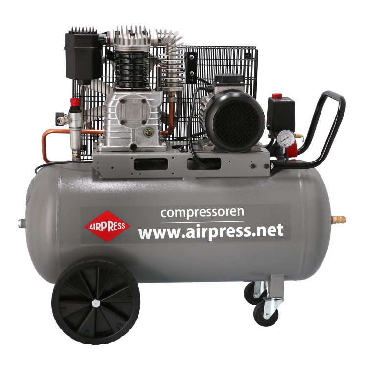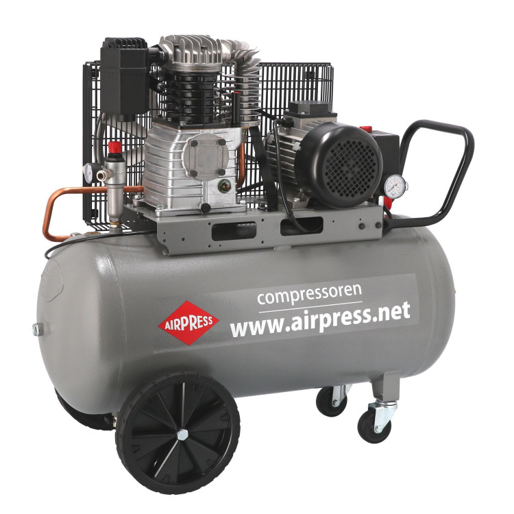 Компресор AIRPRESS HK 425-100 зібраний із якісних комплектуючих, виготовлених у Євросоюзі. Ретельне складання на нідерландських заводах забезпечує стабільну тривалу службу. Довговічності також сприяє ефективна система охолодження, що включає примусову циркуляцію повітря і збільшений картер, для змащування маслом елементів, що труться, і тепловіддачі. Передача моменту, що крутить, з двигуна на поршневу групу здійснюється за допомогою ремінного приводу, який забезпечує кращу вібро- і шумоізоляцію. А колеса транспортування разом з переднім обертовим дозволять з легкістю переміщати агрегат навіть одній людині.