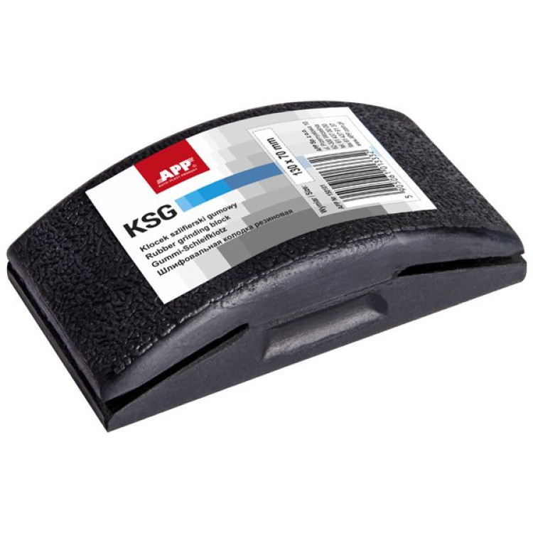 APP KSG 130x70 мм — гумова колодка для ручного шліфування, до якої за допомогою спеціальних затискачів кріпиться абразивний папір. Призначена для шліфування сухим і мокрим методом.