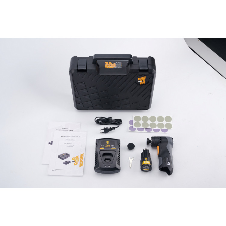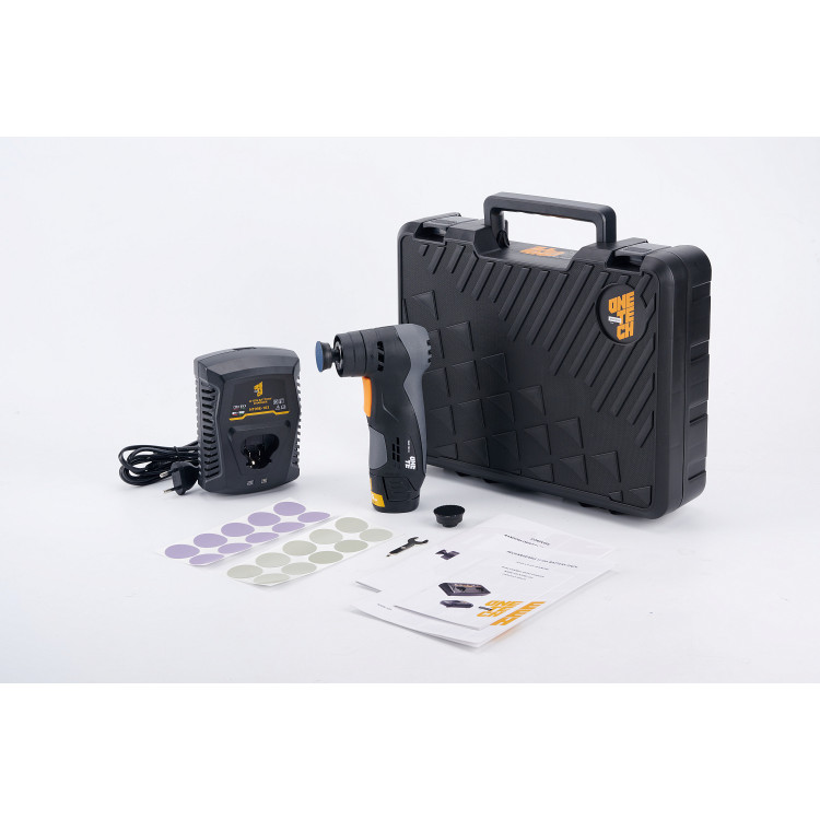 ONE TECH NT09EC-405-S1 - орбітальна полірувальна та шліфувальна машинка на акумуляторі Li-ion 10.8V (2,5 Аh). Швидкість регулюється від 4000 до 10000 об/хв. Міні-полірувальна машинка на акумуляторі комплектується двома підкладками 31 мм (PSA і Velcro), а також дисками 3000 - 10шт. Хід орбіти - 3 мм.