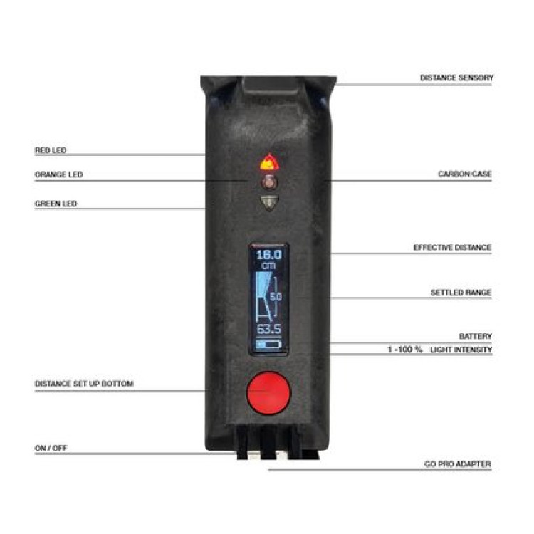 360 TRUE LIGHT EVO METER - модель, що отримала вбудований цифровий далекомір. Дисплей показує відстань розпилення в реальному часі, а також рівень заряду батареї та інтенсивність світла. Зворотний зв'язок у реальному часі зі стрілками, що вказують, чи надто близько чи надто далеко від заданого значення. Інтегрована система, сумісна з Go-pro: комплект включає магнітний комплект для автономного використання.
