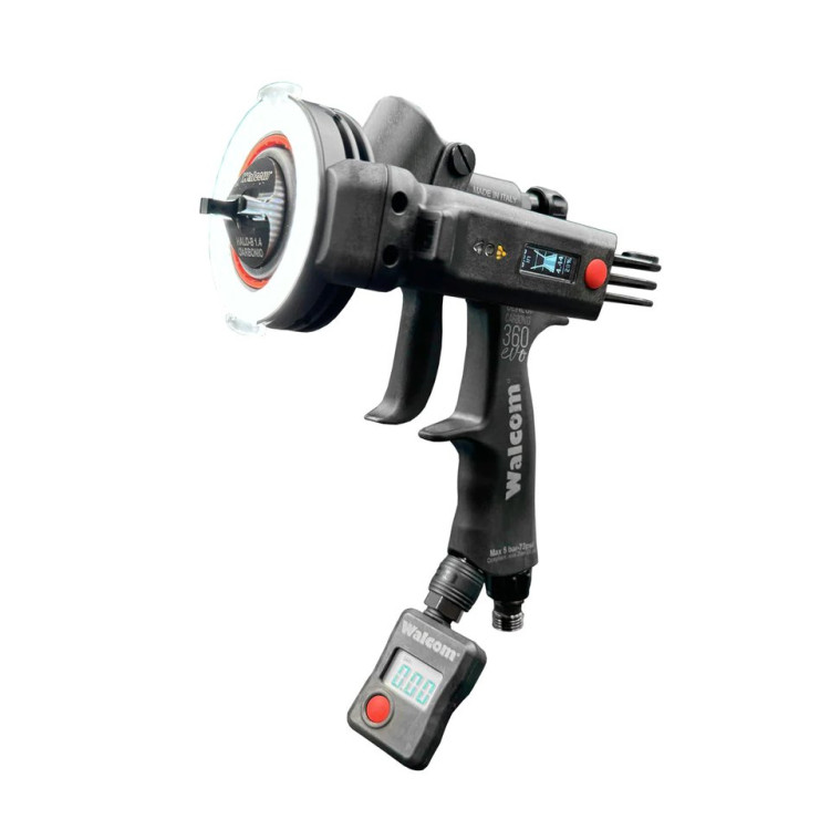 Ліхтар Walcom 360 TRUE LIGHT EVO METER - ідеальний помічник для маляра. Ліхтар має дві функції: прозора лінза для перевірки кольору та матова лінза для підсвічування під час розпилення. Він універсальний та з 4 різними гумовими кільцями підходить для більшості фарбопультів на ринку.