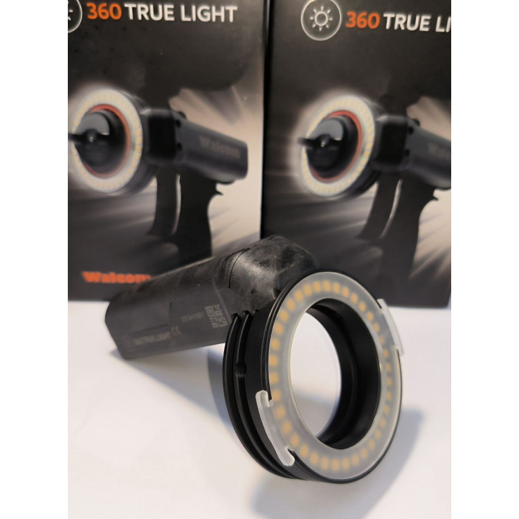 Ліхтар Walcom 360 TRUE LIGHT - ідеальний помічник для маляра. Ліхтар має дві функції: прозора лінза для перевірки кольору та матова лінза для підсвічування під час розпилення. Він універсальний та з 4 різними гумовими кільцями підходить для більшості фарбопультів на ринку.