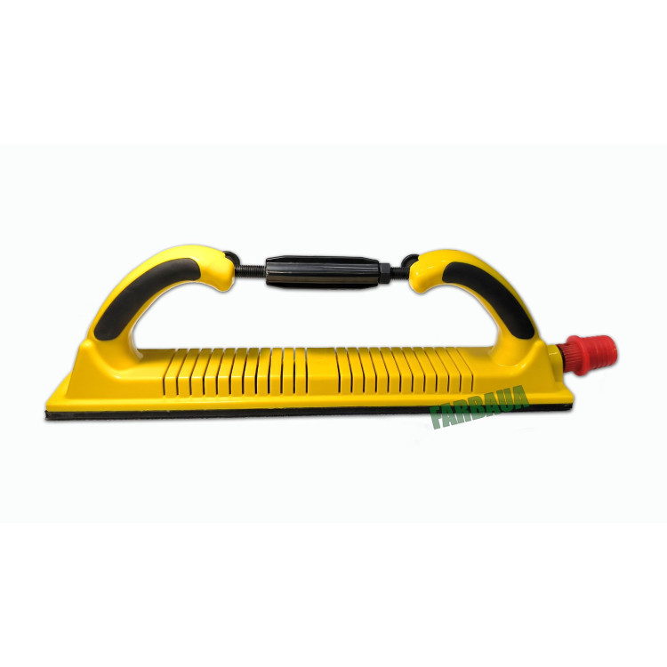 Абразивні смуги кріпляться за допомогою системи Velcro ("липучка"). Ручка оснащена прогумованими вставками для надійного захоплення та запобігає ковзанню руки під час роботи.
