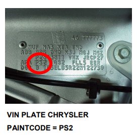 Автовиробники розміщують необхідну інформацію на спеціальних табличках VIN-Plate. На них можна дізнатися дані про: виробника авто, VIN-код, вагові характеристики, а також код кольору фарби кузова Chrysler.