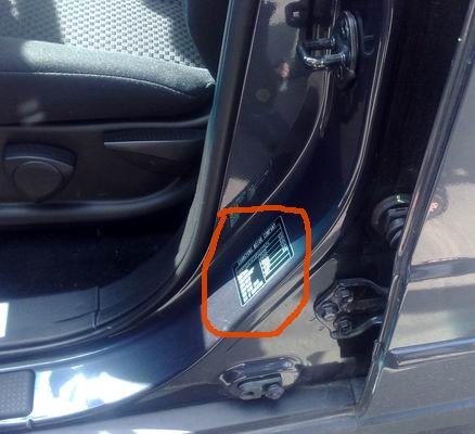 Код міститься в нижній правій частині наклейки, промаркований як «Body paint color» і, як правило, представлений тризначною послідовністю латинських букв. Так приблизно виглядає етикетка Vin Plate автомобілів SsangYong де знаходиться номер фарби (код обведений овалом):