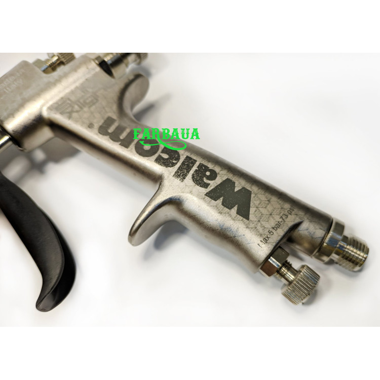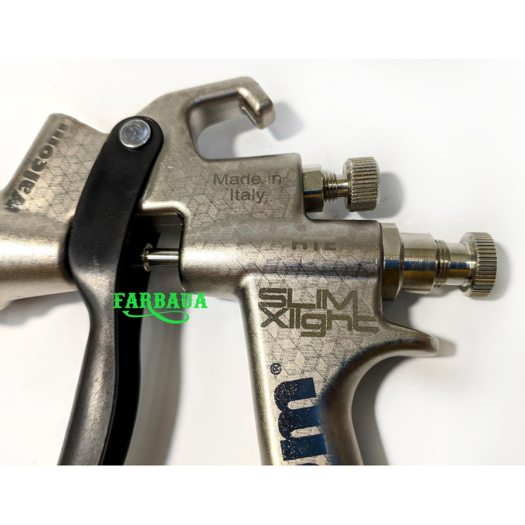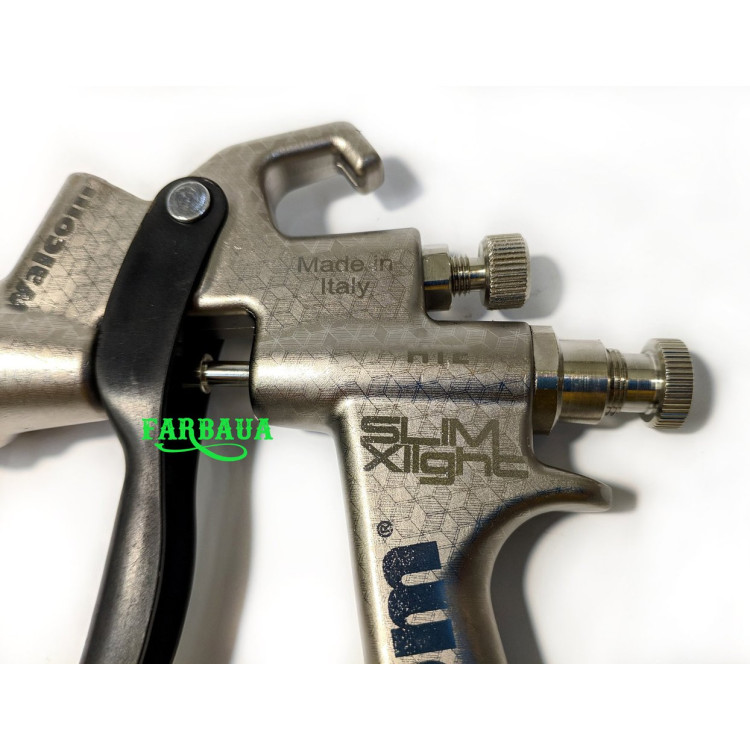 Спеціальне покриття корпусу MattNickel для кращого чищення. Також в фарбопульті Walcom Slim X-Light HTE (HALO) зменшено витрату повітря, яка становить 260 л/хв при тиску 2 бар.