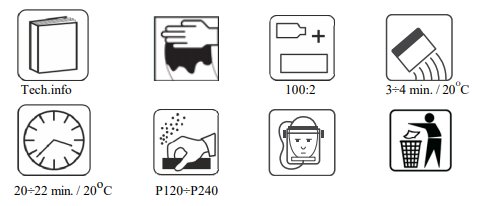 Шпаклівка має гарну адгезію до поверхонь із різних пластиків (ABS, PC, PPO, PA, RTPU, PBTP, PVC, PUR, UP-GF). Поверхня повинна бути попередньо ретельно знежирена та обробити за допомогою Scotch-Brite. Потім її слід знову очистити миючим засобом та висушити.