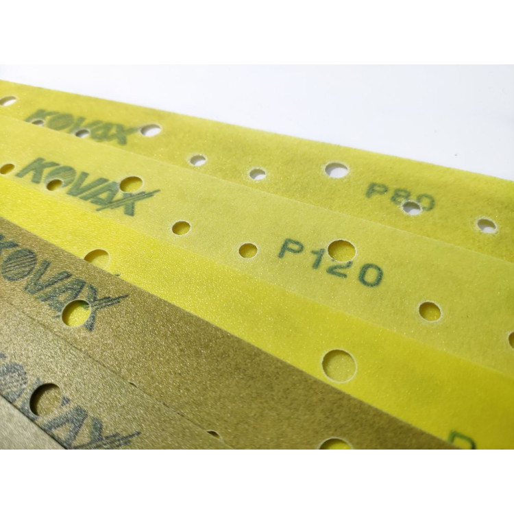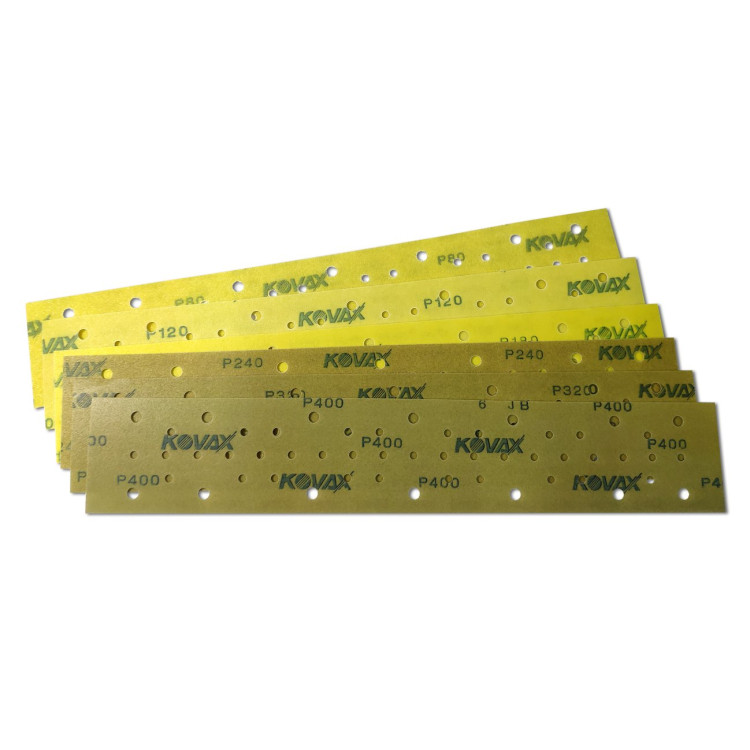 Полосы шлифовальные KOVAX MAXFILM Super Tack Pommax-st 70 мм Х 402 мм выполнены на водостойкой полимерной основе с креплением «Velcro»и отличаются повышенной производительностью и износостойкостью, с улучшенным пылеотталкивающим покрытием. Края отверстий для пылеотвода завальцованы, что предотвращает образование спиральных рисок при износе круга и полос.