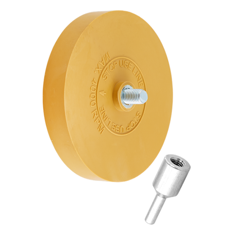 INDASA ERASER WHEELS - полиуретановый диск с адаптером для эффективного снятия следов от двухстороннего скотча, клейких материалов, полосок. Не повреждает поверхность. Износостойкий. Сокращает время.
