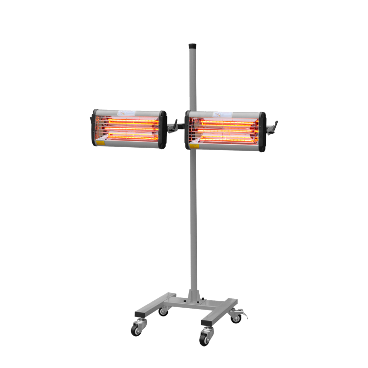 Изготовлена из алюминиевого сплава, рефлекторы из нержавеющей стали марки 304 с зеркальной полировкой. Кварцевые коротковолновые инфракрасные галогенные лампы VPOWER со сроком службы 5000-7000 часов. Простой и удобный дизайн, механический регулятор настройки таймера. Кассета с лампами может двигаться вверх и вниз и поворачиваться на 360°.