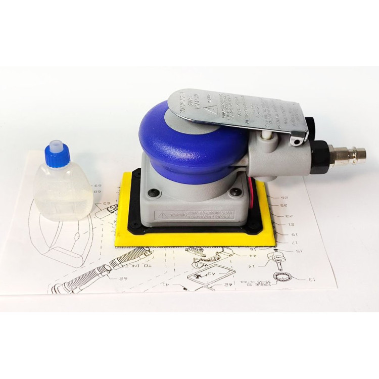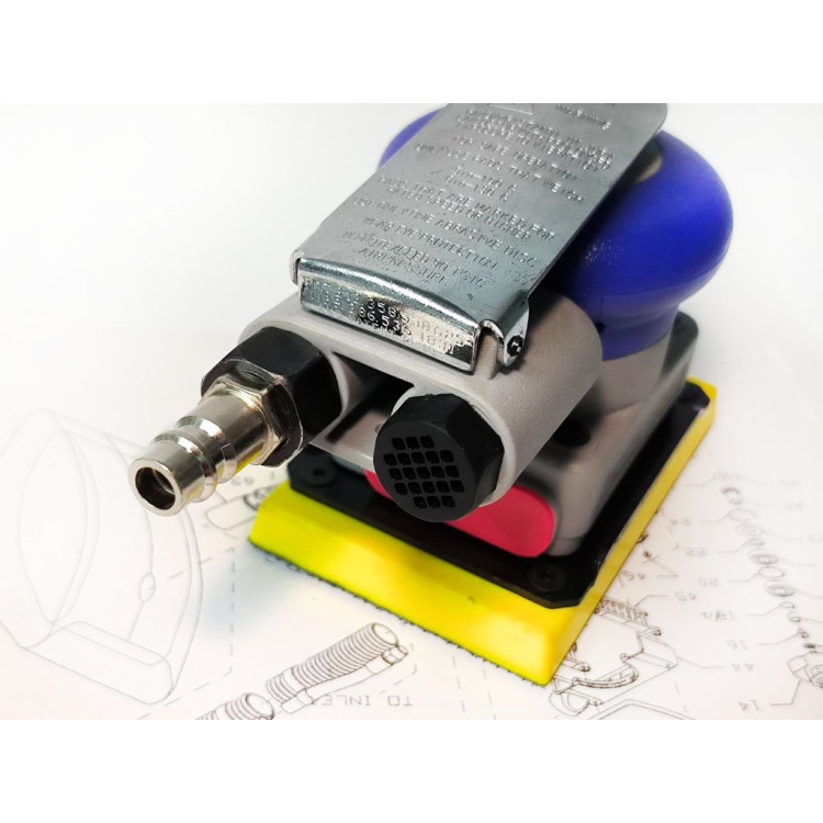Пневматическая шлифовальная машинка Pneumatic sander 70х108 мм - шлифование кривых и труднодоступных мест машинным способом. С помощью данной шлиф-машинки вы можете шлифовать участки, до которых трудно или невозможно добраться с помощью обычной шлифовальной машины. Подумайте о шлифовке порогов, бамперов, фар и многого другого.