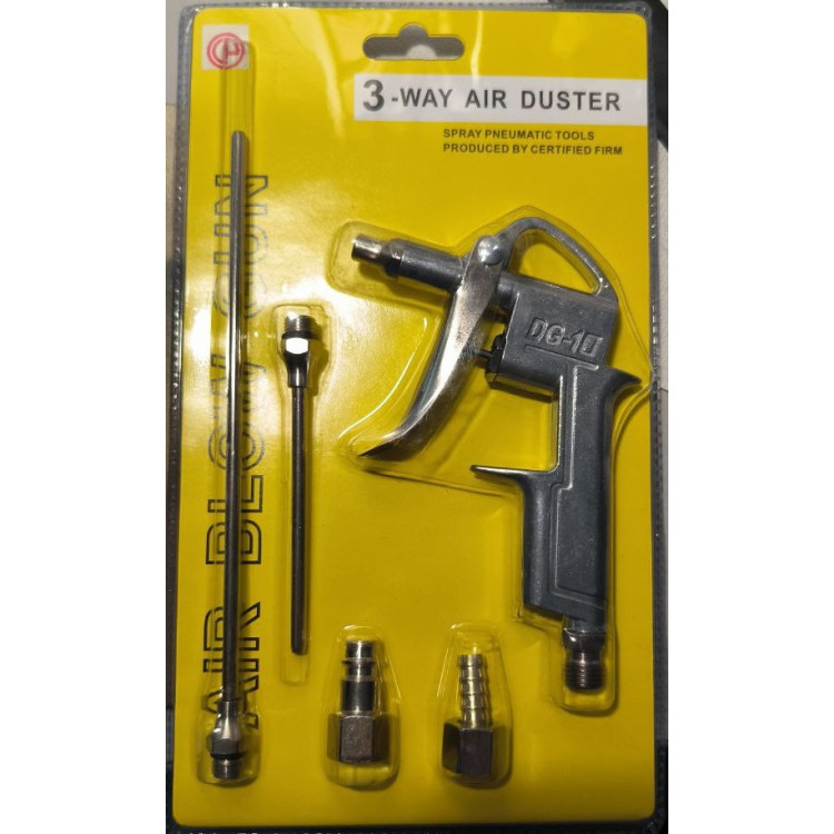 DK-1 (DG-10) СР - продувочный пистолет с комплектом насадок. Необходим для обдува деталей от пыли, грязи, мусора, а также остатков растворителя. Легкий и удобный корпус. Благодаря дополнительным насадкам пистолет DK-1 (DG-10) СР обеспечит удобство в пользовании для труднодоступных мест.