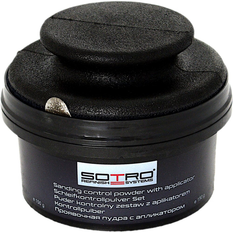 Проявка сухая Sotro T120090 - это уникальное проявочное средство, которое оставляет равномерное порошковое покрытие, делая видимыми все дефекты и царапины на шпатлевке и грунте.