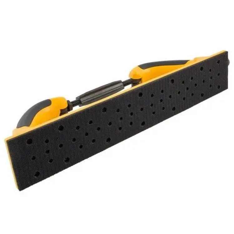 Абразивные полосы крепятся с помощью системы Velcro ("липучка"). Ручка оснащена прорезиненными вставками для надежного захвата и предотвращает скольжению руки во время работы.