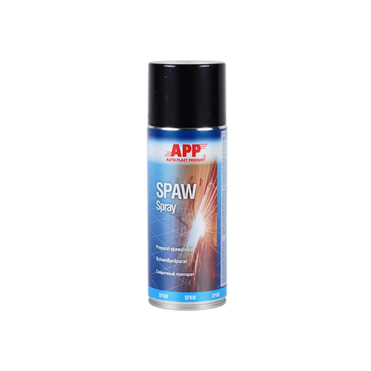 AРР SPAW Spray - чистит и консервирует сопла сварочных горелок, защищая головку горелки и свариваемые элементы от брызг, одновременно не ослабляя швов. Сварные элементы можно подвергать дальнейшей обработке, например, воронению, гальванизации, лакированию без дополнительного очищения. Свойства. Средство представляет собой комплексную защиту в ходе сварки, продлевая работоспособность газовых и контактных сопл. Дает возможность быстрого очищения сопла и его замены. Препарат не содержит силикона.