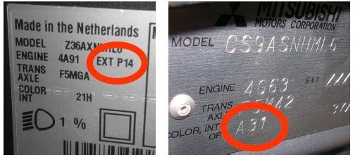 Автопроизводители размещают необходимую информацию на специальных табличках VIN-Plate. На них можно узнать данные о: производителе авто, VIN-код, весовые характеристики, а также код цвета краски кузова Mitsubishi.