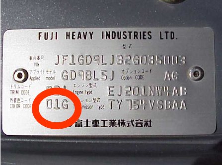 Автопроизводители размещают необходимую информацию на специальных табличках VIN-Plate. На них можно узнать данные о: производителе авто, VIN-код, весовые характеристики, а также коде цвета краски кузова Subaru.