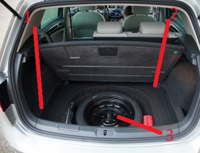 - В багажнике под запаской или под обшивкой пола багажника, или за правой крышкой в обшивке багажника