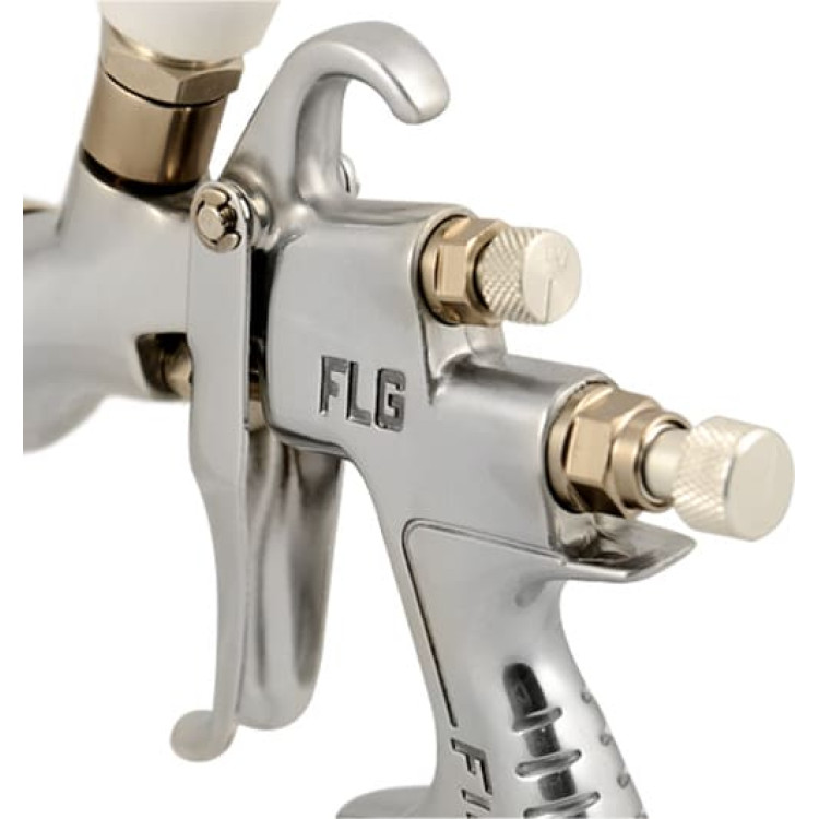 FLG 5 представляет собой бюджетный краскопульт DeVilbiss. Данный краскопульт по своим характеристика схож с краскопультом DeVilbiss GPI GP1. DeVilbis FLG 5 является краскопультом среднего давления и пониженного туманообразования. Технология Trans-Tech позволяет применять его на широком спектре работ: для акриловых красок и лаков, базовых красок и акриловых грунтов. Корпус краскопульта выполнен из прочного алюминия, воздушная голова из латуни, игла и дюза из алюминия