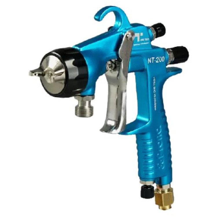 One Tech NT-200 - легкий, качественный и отлично сбалансированный краскопульт с нижним расположением бачка. Отлично подойдет для нанесения различных видов материалов: красок, лаков, грунтовок. Используется в автомобильной и мебельной промышленности, машиностроении, индустриальном производстве, ремонтной покраске.