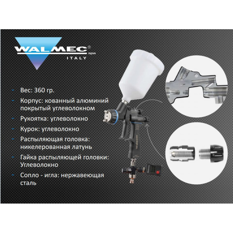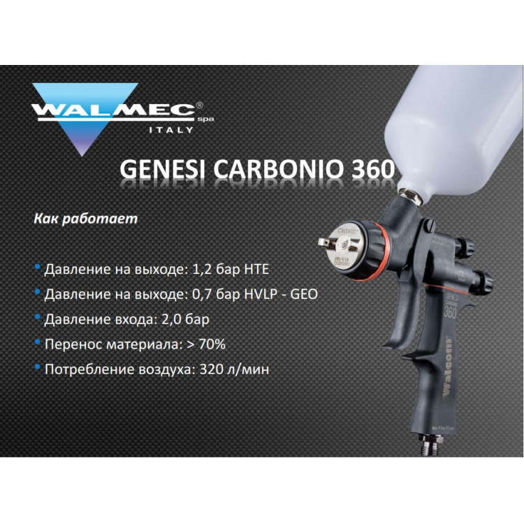 2 года исследований, разработок и тестов позволили Walcom предложить рынку самый легкий, высокопроизводительный и самый инновационный распылитель Walcom Genesi Carbonio 360.
