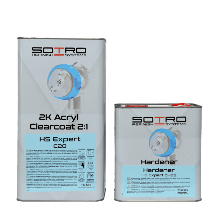 SOTRO HS Acryl Clearcoat Expert C20 - двухкомпонентный бесцветный акриловый лак с высоким содержанием сухого остатка (HS - High Solid).
