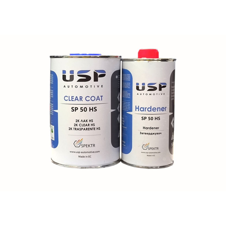 Лак акриловый USP SP-50 HS 2+1 - бесцветный, прозрачный двухкомпонентный акриловый лак, с высоким содержанием сухого остатка, для частичной и полной покраски. Легко наносится. Хорошо растекается. Быстро сохнет. Лак имеет высокую стойкость к атмосферным воздействиям, в том числе ультрафиолетовым лучам, обладает высокой прочностью и хорошим блеском. Наносится в 2 слоя.