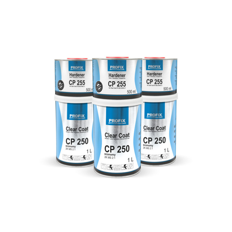 Profix CP 250 2K MS 2:1 SRF - двухкомпонентный бесцветный лак, предназначен для тех, кому важно получить высококачественное прозрачное покрытие по оптимальной цене. Сильный блеск достигается уже после двух-трёх проходов.