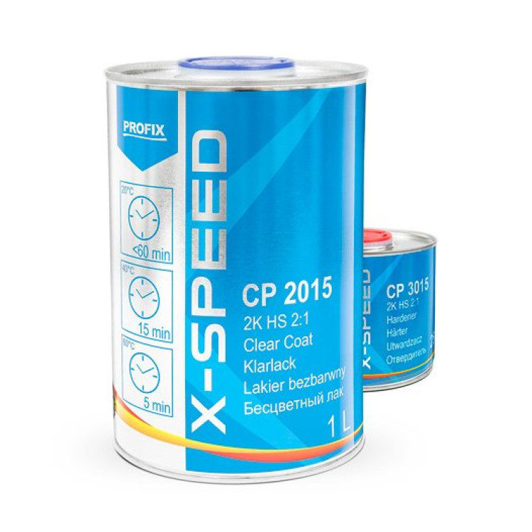 Profix CP 2015 2K HS 2:1 X-Speed - двухкомпонентный бесцветный лак HS с очень коротким временем засыхания и очень большим содержанием сухой массы (High Solid). Благодаря этому покрытие имеет сильный блеск, глубину, а лак не стекает с вертикальных поверхностей.