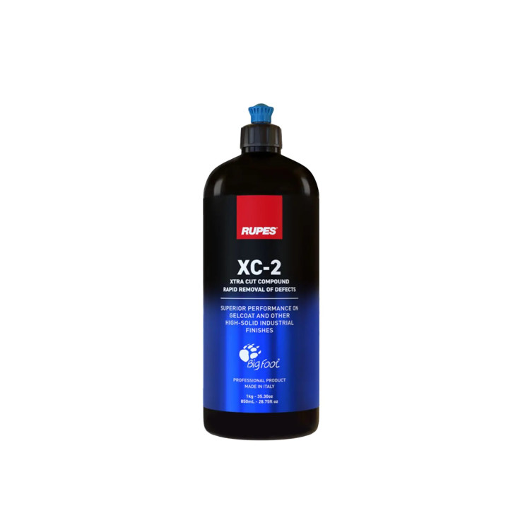 RUPES XC-2 Xtra Cut Compound (туба 1 кг) - крупнозернистая полировальная паста. Этот новый состав специально разработан для быстрого удаления дефектов с гелькоута и других промышленных покрытий с высоким содержанием твердых частиц, столешниц, твердой краски и в авиационной промышленности. Его можно использовать в качестве первого шага после процесса шлифования или для удаления окисления и других загрязнений.