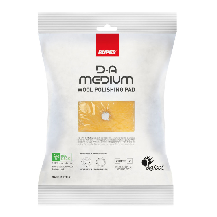 D-A Medium Wool Polishing Pad с желтой пеной диска средней шерсти очень гибкая, что обеспечивает улучшенный контроль на изгибах и контурах. Кроме того, она обеспечивает более мягкую опору для улучшенных возможностей финишной обработки.
