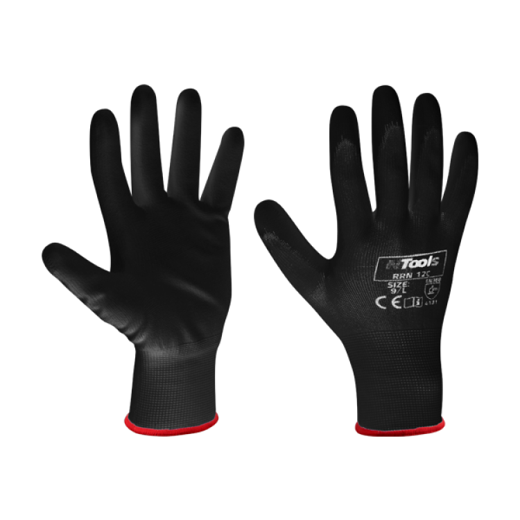 NTools RRN 12B - рабочие перчатки из непылящей нейлоновой ткани, покрытой полиуретановым слоем со стороны ладони. Исполнение обеспечивает высокую стойкость к повреждениям, надежный захват инструментов, материалов и ремонтируемых элементов. Бесшовное исполнение обеспечивает удобство использования.